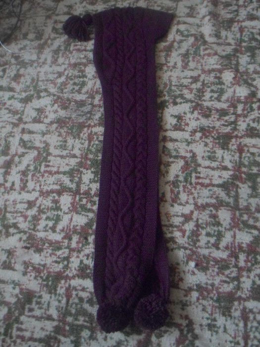 Шарф-капюшон, спицы №3, пряжа пехорка северная, цвет ежевика, общая длина 220 см.
