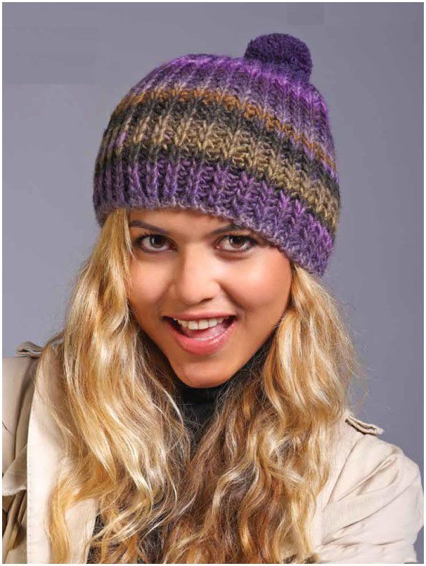 - Шапочка с помпоном спицами английской резинкой