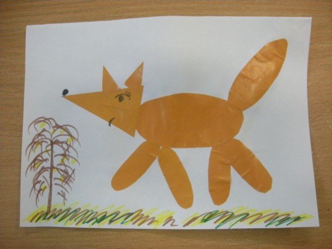 В детском саду, особенно в младших группах, ребятишки неспешно начинают выполнять такие работы. Воспитатель дает им готовые детали, дети их наклеивают. Чем ребенок становится старше, тем больше свободы у него при изготовлении такого рода аппликаций: они самостоятельно ножницами вырезают шаблоны, составляют несложные сюжетные композиции.