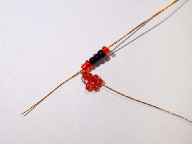 Существует несколько вариантов создания головки жука из бисера. В первом случае головку плетут из медной проволоки, на которую нанизывают бисер округлой формы.
