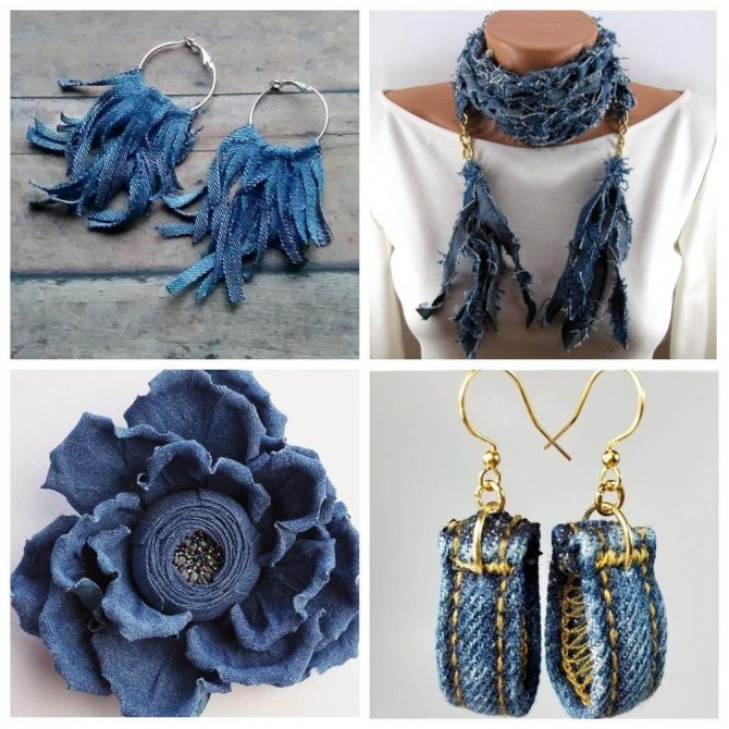 Юных модниц может заинтересовать и джинсовая бижутерия — оригинальные серьги, колье, браслеты, бусы, броши, которые можно сделать своими руками.
