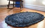 Если у вас накопилось много старой джинсовой одежды, из неё можно смастерить коврик — такой, как на фото.