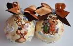 Техника декупаж собирает все больше любителей прекрасного утонченного декора. Для изделия требуется шар-основа, красивая новогодняя салфетка, клей ПВА.
