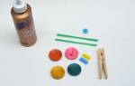 - Задекорировать изделие. Для этого используют: блески, бумажные вырубки разной формы, пайетки, бусины, полу бусины и т.д. Изделия из нитей можно и окрашивать краской из балона или акрилом. Акварель и гуашь не подойдут, так как способны размочить изделие и привести к его испорченному внешнему виду.