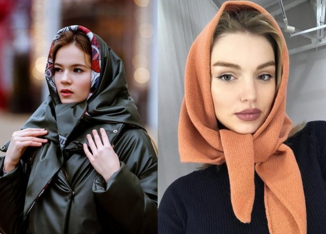 Также модно смотрится кожаный платок на голову. Не последнее место отведено комфорту, поэтому можно носить мягкие объемные вязаные полотна. При этом вязка может быть немного грубой, ее принято называть «деревенской». Чтобы получился такой результат, вывязывают резинку, которая выглядит, как крупная коса.