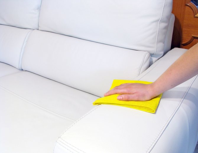 Почистить белый диван из кожзама можно мягкой меламиновой губкой, хлопковыми тряпками, сухими и влажными салфетками. Чрезмерных усилий прилагать не следует, чтобы не повредить капризный материал.