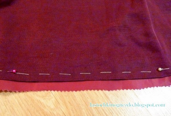 в)Эмпирическим путем пришла к выводу, что длина подкладки должна быть примерно на 1,5 см длиннее низа готового изделия, тогда внутри срезы подклада и подгибки должны совпасть;).