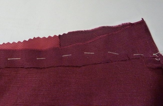 - Срезы их нужно уравнять (лицом к лицу), сколоть, затем стачать по всей длине.
