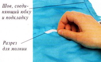 - Проследите, чтобы молния открывалась и закрывалась свободно, не захватывая ткань подкладки. Работайте с юбкой и с подкладкой так, как будто они единое целое, пришейте и обработайте пояс. Сшейте подкладку и ленту молнии, стараясь, чтобы стежек не было видно с лицевой стороны.