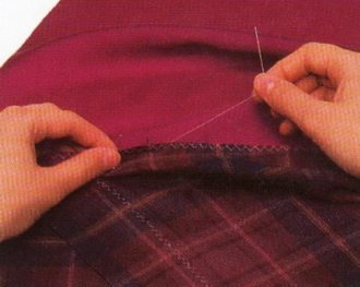 Способ заключается в том, что полностью сшитую подкладку прикрепляют локально — в одном-двух местах, и она свободно свисает, не искажая форму изделия. На юбке такую подкладку пришивают к поясу, на пальто или пиджаках — к подкройной обтачке воротника и несколькими стежками вручную к подбортам.