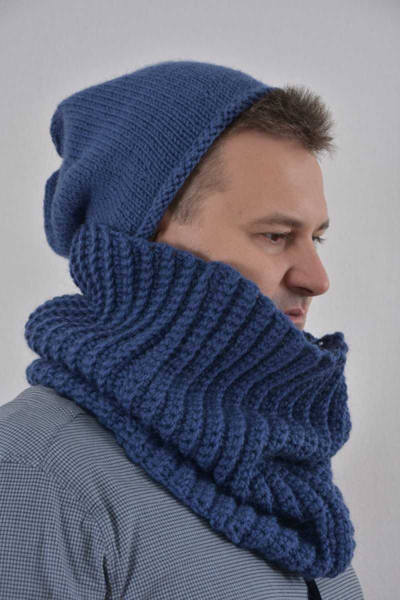 Особую популярность набирают необычные широкие полотна своими руками. Все виды мужских шарфов изготавливаются из приятных на ощупь натуральных нитей.
