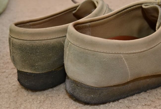 Для этого следует намочить в теплой воде носки, изготовленные из хлопка. Если туфли сильно сдавливают стопу, рекомендуется взять изделие из плотного материала. После отжима носки надевают на ноги и обуваются. Чтобы разносить замшевую обувь, которая жмет, потребуется потратить около 2-3 часов.