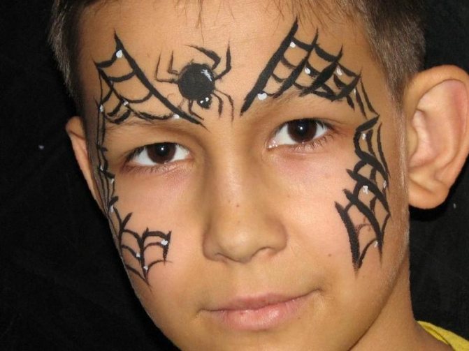 После того, как сделаете все вышеперечисленное, нанесите на лицо ребенка контуры спайдермена. Их нужно рисовать белым цветом. Для того, чтобы сделать аквагрим красивее. И оригинальнее.