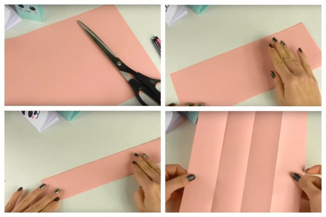 - Возьмите ножницы. Сделайте 3 разреза к ближайшему сгибу. Складываем их.
