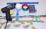 - широкие атласные ленты (у нас это 2 белого и 2 синего цвета с размером 5 на 22 сантиметра);