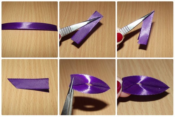 Мягкий лепесток можно сделать, если аккуратно оплавить ленту над огнем