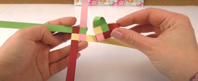 - В тех местах, где в нижнем ряду были добавлены дополнительные модули, вставьте снова по два модуля с обеих сторон, чтобы сердце стало еще более объемное.
