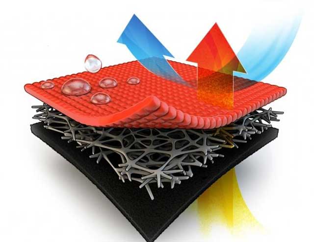 Принцип работы мембранной ткани основан на том, что она впитывает влагу, не пропуская ее внутрь. Но скопившаяся внутри мембран вода препятствует выходу тепла наружу, поэтому такая гидрофобная ткань хоть и эффективна, но в одежде из такого материала человек быстро начинает потеть.
