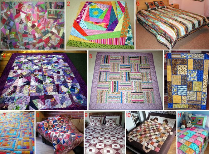 Если покрывало будет сшито в стиле пэчворк, здесь нужно будет применять другие материалы.