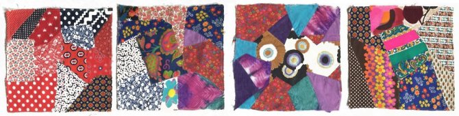 - По схемам производится раскладка образцов ткани до получения требуемого эстетического эффекта. Желательно оперировать сразу со всеми избранными блоками, так будет легче добиться общего зрительного эффекта;