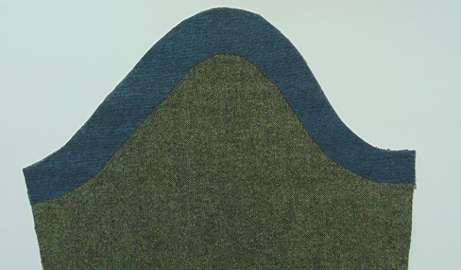 Дополнительно долевой кромкой дублируются края бортов, проймы, линия перегиба лацкана, горловина, угол ворота, внешняя деталь клапана.