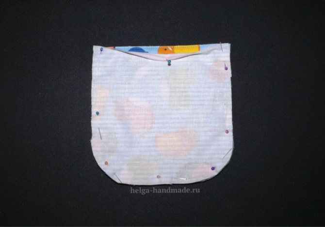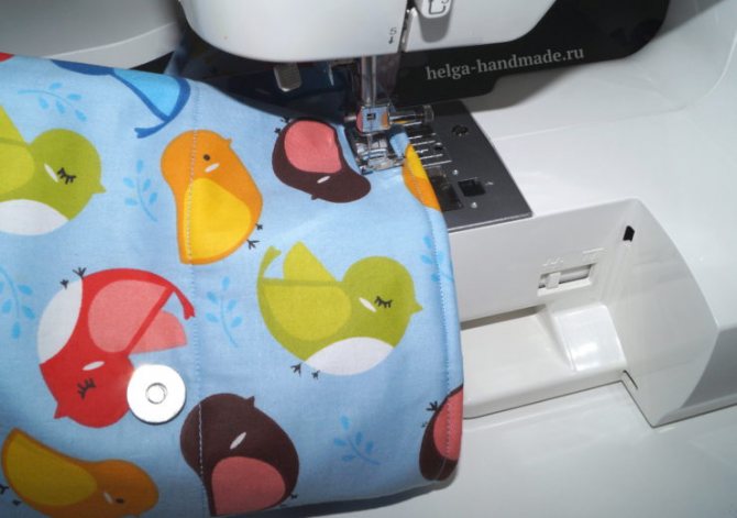 - С боков заготовки сложить уголками, сформировав дно. Прошить на машинке.