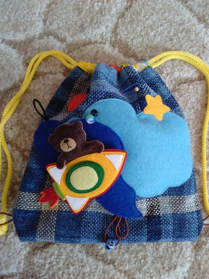 Можно проявить фантазию и украсить рюкзак начальной буквой имени малыша, яркими аппликациями или цветами из ткани. Главное, такая вещичка уникальна и ребенок с удовольствием будет ее носить.