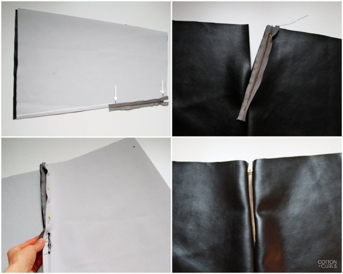 Важно! Одна из самых сложных частей работы — вшивание молнии. Следите за тем, чтобы складки ткани и нитки не мешали передвижению ползунка по пришитой молнии.