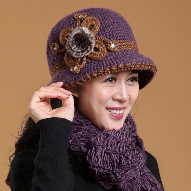 Основным украшением для макушки будет помпон, из пряжи или меха. Но, можно использовать предварительно подготовленные воланы, связанные крючком. Они будут хорошо смотреться собранными в изысканную ленту. Красиво смотрятся ушки и бантик, но они подходят больше для молодых девушек. Из свежих идей можно выделить обвязку краев шапки. Искусные рукодельницы могут сделать это при помощи спиц или крючка.