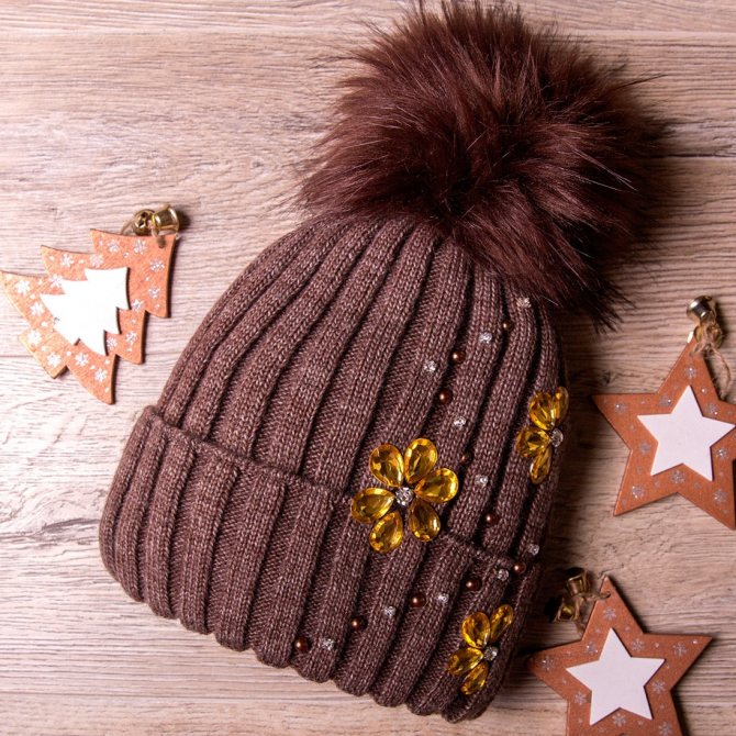 Тем, кому этого может показаться недостаточным, рекомендуем выбрать один дополнительный элемент и использовать только его. Например, к такой шапке можно приделать помпон или кисточку. Некоторые модели позволяют украсить себя мелким бисером или пайетками.