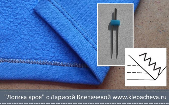 Как видим, использование распошивалки не является обязательным условием шитья трикотажа. Но если вы хотите, чтобы по краю детали непременно шел шов, как у распошивалки, то можно сымитировать его с помощью двойной иглы на бытовой швейной машинке.