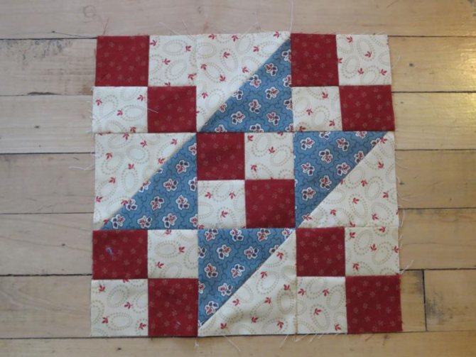 Техника включает в себя квадраты и треугольники, из которых создается полотно оригинальных узоров. При сборе полотна данной технологией стоит опираться на специальный алгоритм сборки.