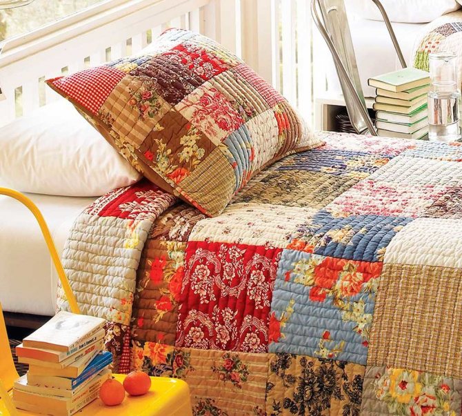 - Тканевое полотно, собранное из отдельных лоскутков. И не важно, одинаковой они формы или разной. Форма может быть и геометрически правильной, и свободной.