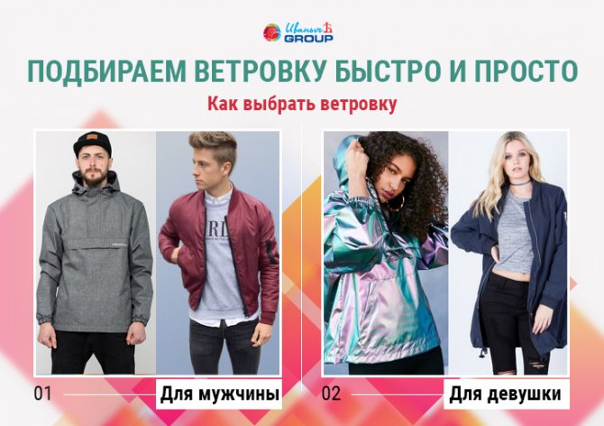 Если мы выбираем ветровку, то в зависимости от собственных предпочтений можем обзавестись такими ее моделями: