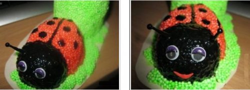 • Прикрепите глаза, нарисуйте на спине узор, как на фото.