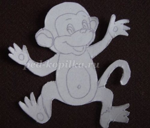 • Возьмите рисунок обезьянки, переведите рисунок на картон через копировальную бумагу. Прорисуйте все детали.