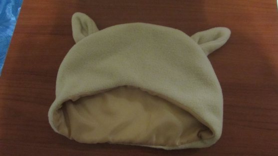 . Вырезаем из флиса переднюю и заднюю часть шапочки и ушки-4 детали (по 2 на каждое ушко)