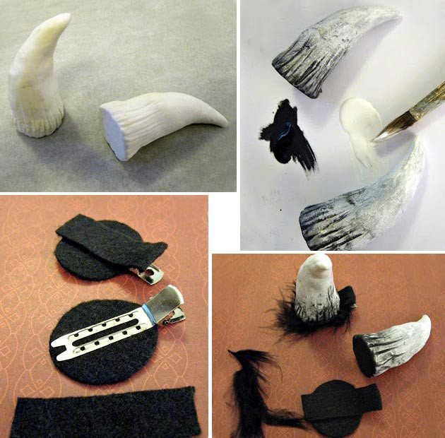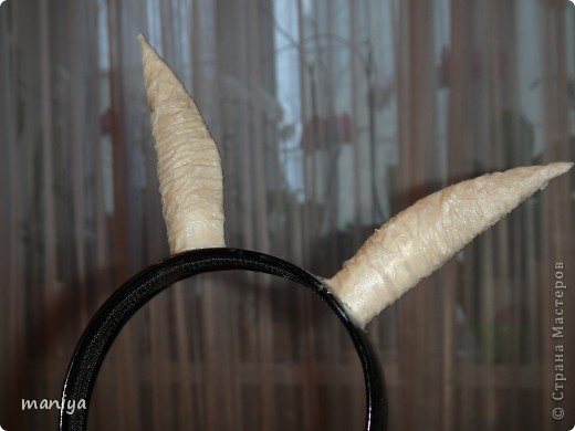 Крепить такие рожки можно также на ободок для волос, котоырй дополнительно можно зафиксировать в волосах шпильками и невидимками.