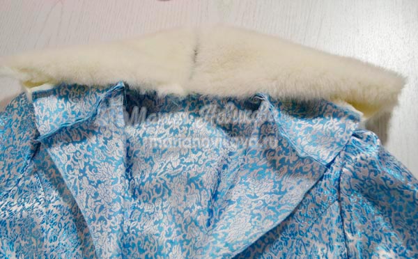 Затем обтачайте широкие концы воротника, перегибая на 1,0 см. деталь из меха.
