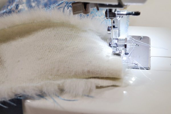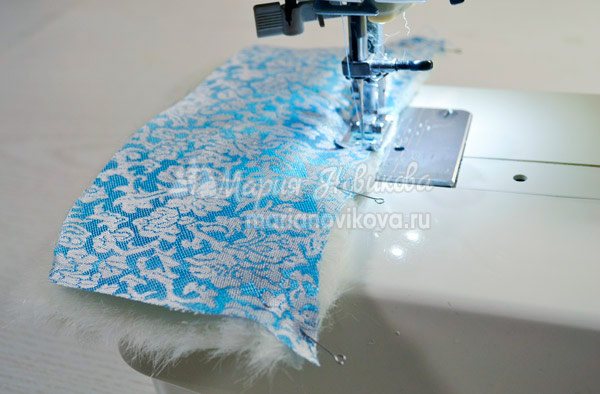 Соедините детали из меха с деталями из ткани на швейной машинке, по вогнутым срезам.