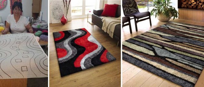 Сейчас модны ковры с длинным ворсом, который называют «травка». Они очень мягкие и теплые. Правда, без мощного пылесоса убирать их сложно, но смотрятся красиво, да и уютно с ними. Сделать такие коврики своими руками совсем несложно, однако, может потребоваться много времени. Это если решите использовать нитки. Зато очень красиво.