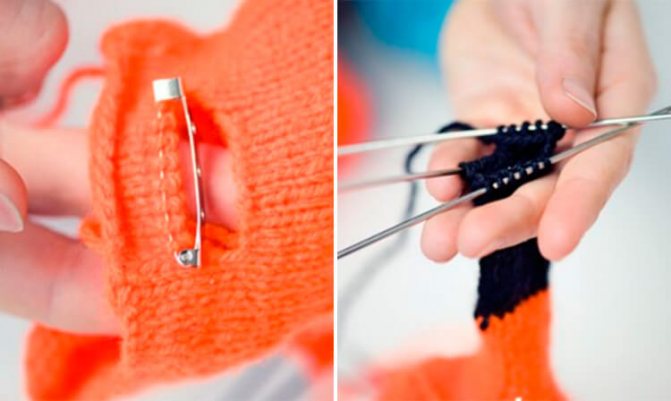 Кромочные петли: в начале ряда свяжите двойную петлю (рабочая нить над правой спицей, 1 снять, как изнаночную, и нить затянуть. Крайняя петля в конце ряда вяжется лицевой.