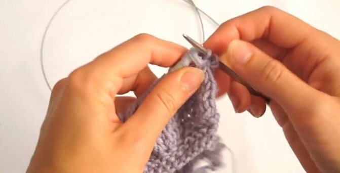 Закройте петли: 1 кром., 1 лиц., левую спицу вводим в петлю и протянем через вторую.