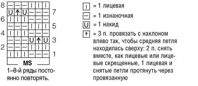 На схеме показаны лицевые ряды, изнаночные вяжутся по рисунку.