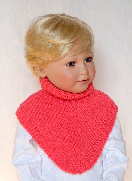Если ваш ребенок еще не понимает, как важно носить шарф, чтобы не болеть, пытается его все время развязать, то для вашей ситуации есть решение проблемы –связать шарф манишку спицами для ребенка.