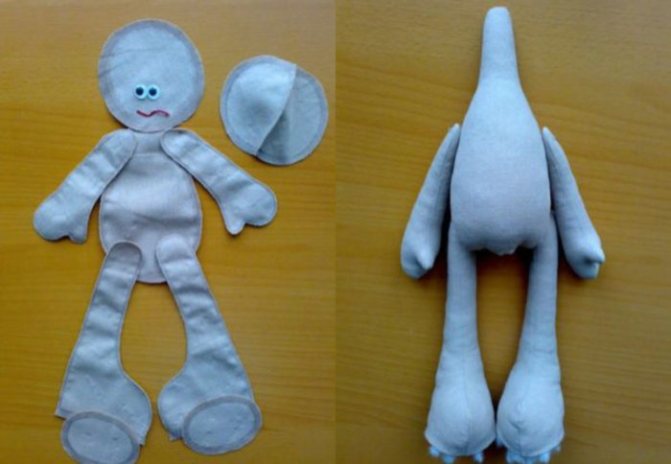 - Части тела сшиваются сначала в одной плоскости. Получается два плоских человечка, которые потом соединяются между собой и набиваются синтепоном.