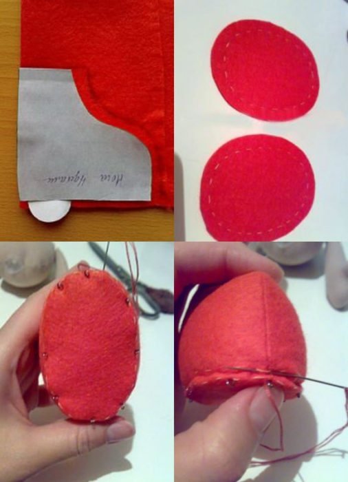 Лучшим вариантов для изготовления куколки считается именно второй. Части сшиваются с изнаночной стороны. При этом оставляется несколько сантиметров зазора, через которые производится выворачивание деталей и набивка наполнителем.