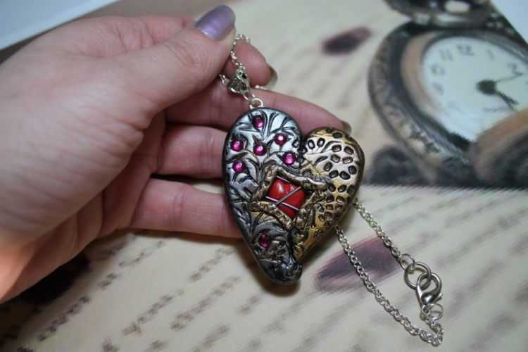 Вариантов дизайна подобных подвесок существует много. Фото самодельного кулона из полимерной глины можно найти на тематических сайтах.