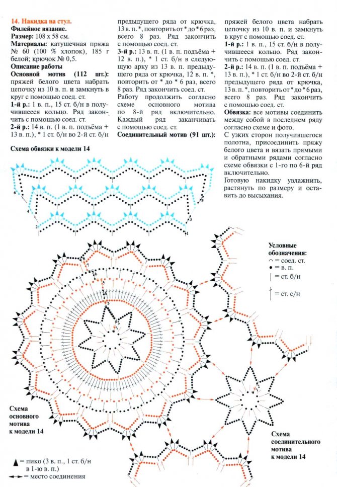 Материалы: катушечная пряжа № 60 (100 % хлопок), 185 г белой; крючок № 0,5.