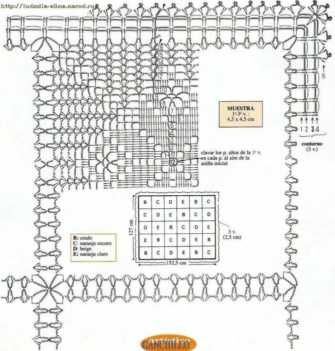Прямоугольная скатерть из мотивов со схемой
